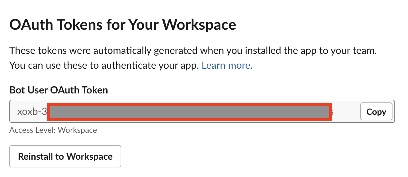 - xoxb 로 시작하는 토큰 값이 생성 된다.